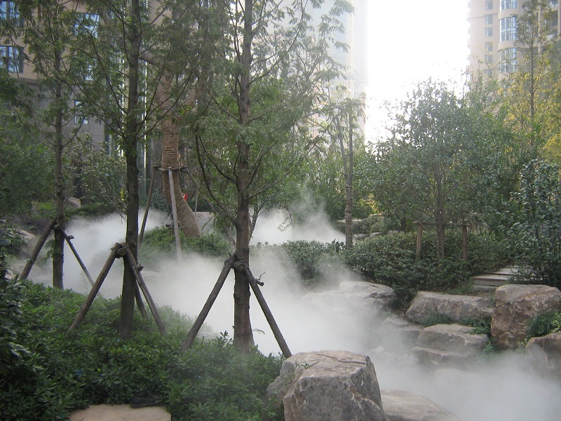 目前,这种供需不相称的尴尬状况已经被打破。现在市场上出现了一种全新的人造雾景观园林造雾雾森系统,这是一种节能型的、环保的人工造雾系统。它是由锦胜雾雾公司自主研发并投入的新产品:它以水为原料,使用成本非常低,经过超纯净化和雾化处理,达到“雾森林海”的自然雾效果。同时,在雾森环境下,有“空中维生素”之称的负离子能达到每毫升空气10万-50万个,是普通城区的2000-5000倍,这一特性将雾森与其他的水景元素明显地区分可开来。置身其中,云雾缭绕之感让人倍感清新,它除了能增强人体免疫力外,还能起到降温、控湿、除尘、气味控制等多种作用,是相对的“绿色产品”。在传统的演出舞台上应用,细腻而厚实的效果不仅近乎真雾,而且对人体有益而无害。同时,其超强的可控性决定了它还能在室外被广泛使用,像旅游景点、城市建设、房产小区等,甚至还在现代农业领域发挥其特有的降温、控湿作用。应该说,在室外,这套系统的使用更能体现巧夺天工的感觉,人类与自然的和谐统一也有了更感性的体现。